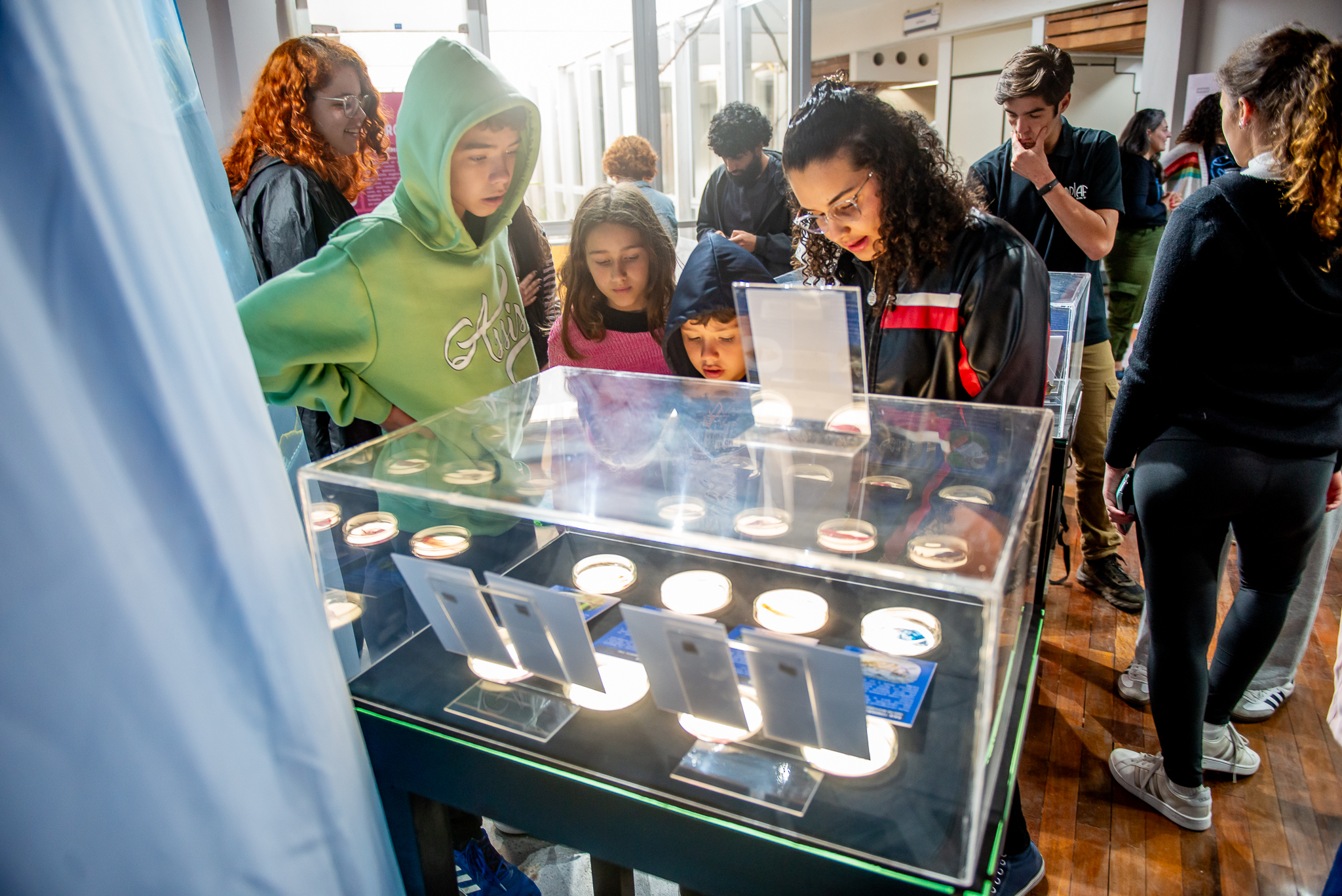 “A água está em todos os ambientes, desde o continente, na forma de rios e lagoas, até a planície costeira, onde os rios formam estuários que se encontram e interagem com o ambiente marinho. Pelo oceano, nos conectamos também ao continente Antártico. Tudo isso é estudado por laboratórios do Setor de Ciências Biológicas, e quem nos visita poderá se colocar no papel do cientista que tenta responder as perguntas que fazemos sobre a natureza”, diz a professora Rosana Moreira da Rocha, coordenadora da exposição.